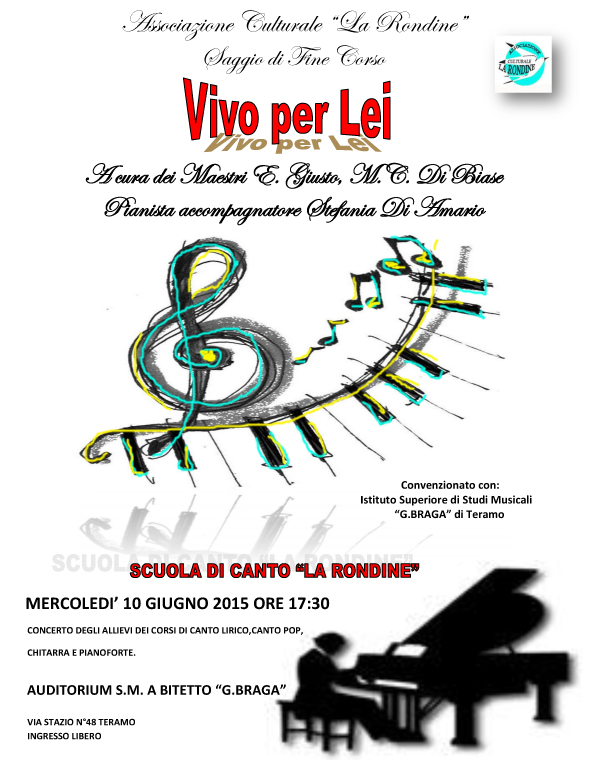 Mercoledì 10 giugno 2015 concerto degli Allievi dei corsi di Canto Lirico, Canto POP, Chitarrra e Pianoforte.